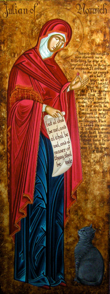 Today the Episcopal Church celebrates dear Julian's feast day. Eat something wondrously good, with gratitude. She would like that. Remember that C.S. Lewis said her book was dangerous. I think she would like that, too. Stories about her suggest she had a cat. I like that.